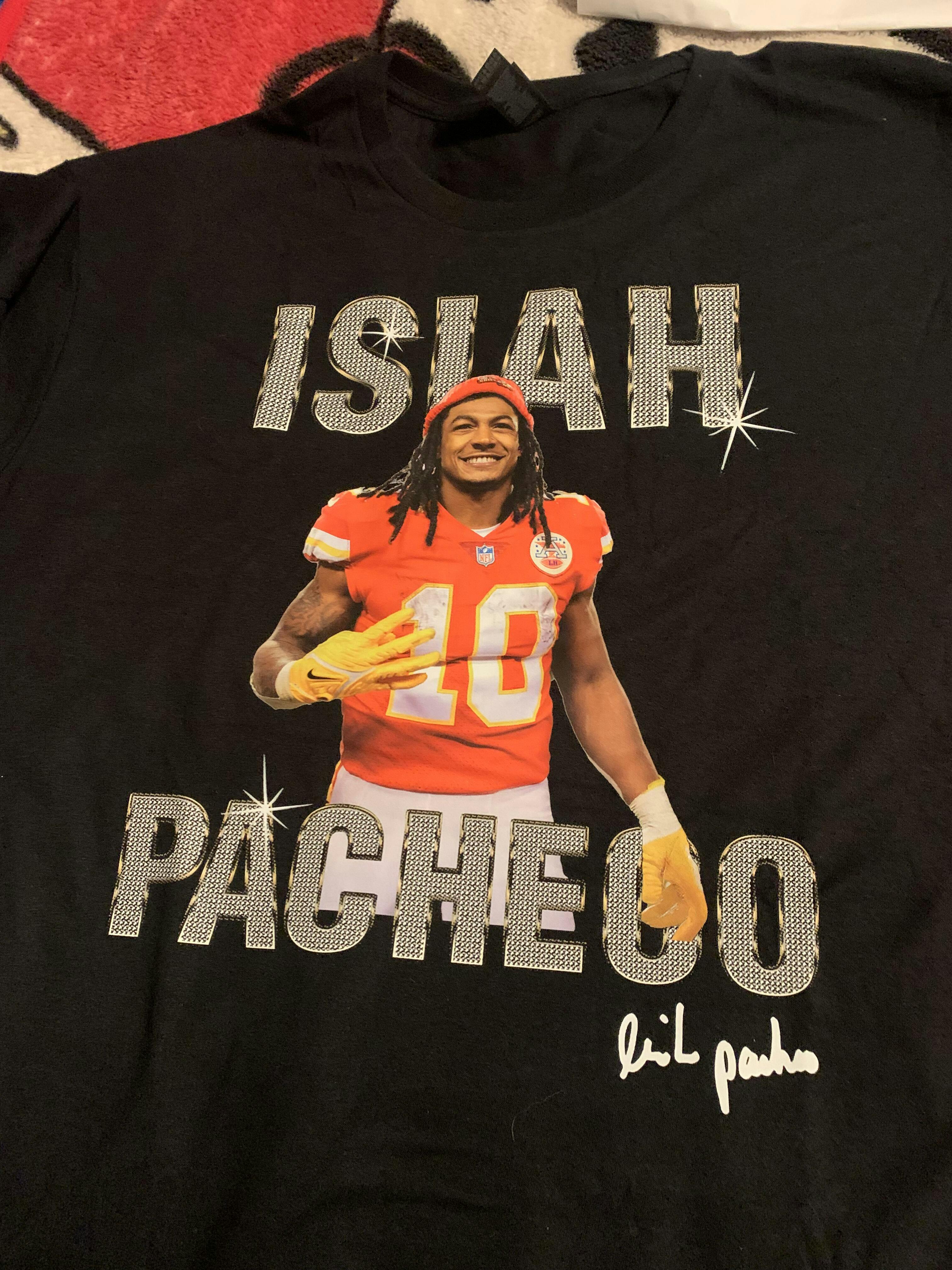 The only 2 complaints I have about the T-shirt are. On the Tik Tok picture I thought it was blinged out. Like with diamonds. The red on here looks like The Washington Red Skins color. The T-shirt is of great quality. The picture of Chris Jones is beautiful and I LOVE how his name is on the back of the T-shirt as well! I'm still going to rock it!